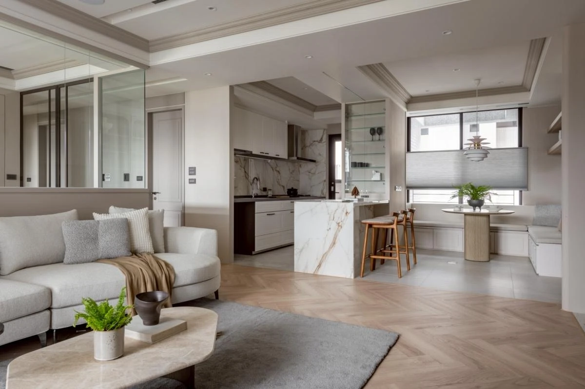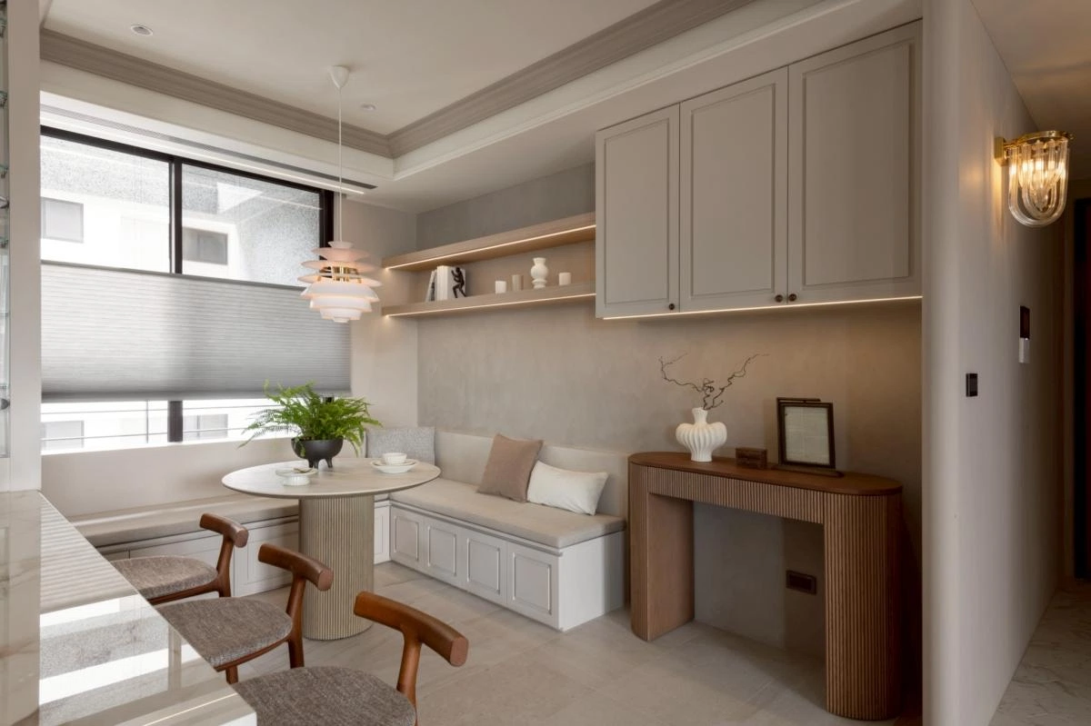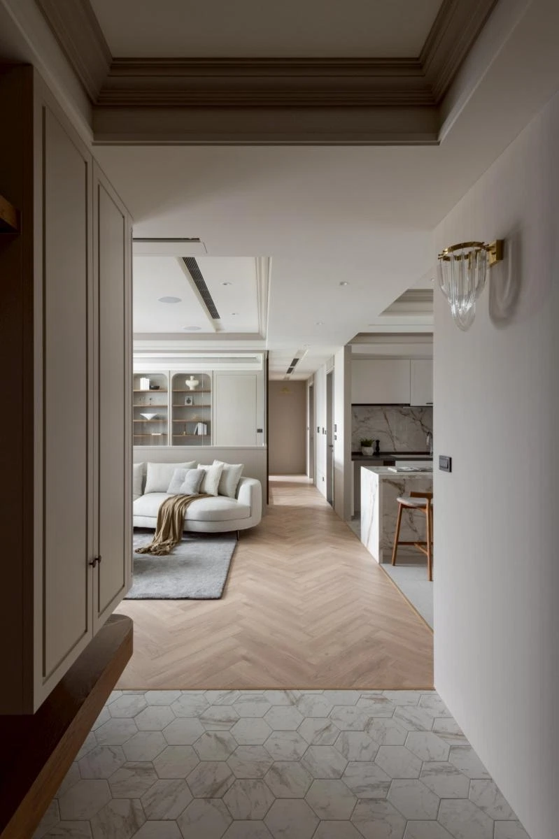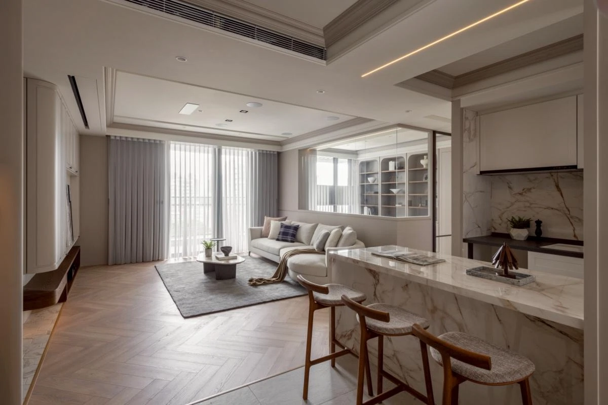 整體以柔和沈穩的調性展開,動線被規劃得流暢而自然,讓居住者在空間中行走時,每一步都能感受到輕鬆自在的節奏。